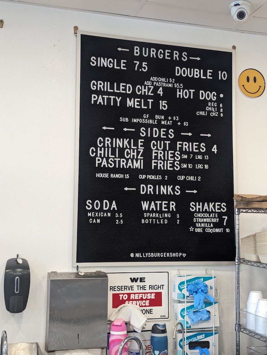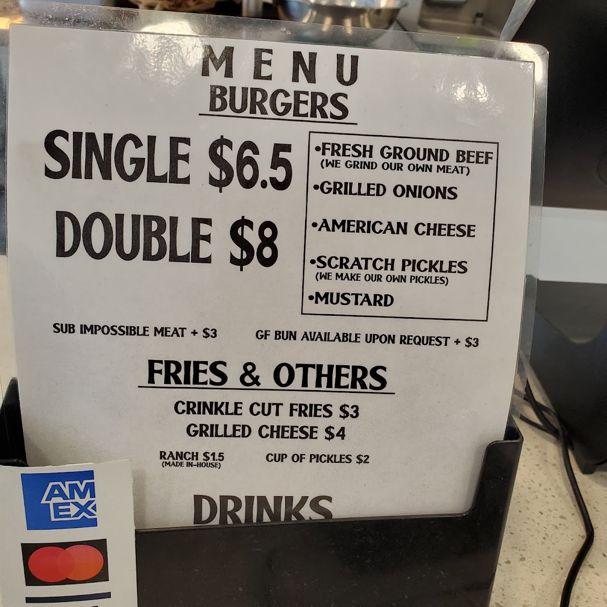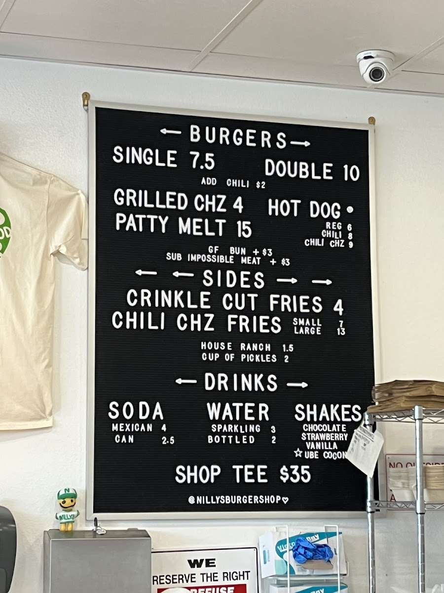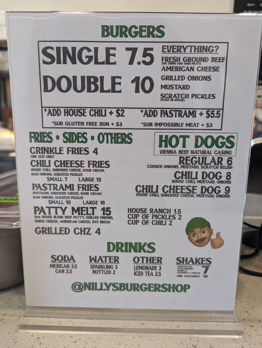In-house, fresh ground beef, yellow american cheese, onions, scratch pickles, yellow mustard, in between martin's potato roll